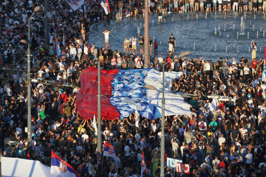 Potom je hor izveo himnu Srbije dok su građani razvili veliku državnu zastavu, javio je reporter agencije Beta.