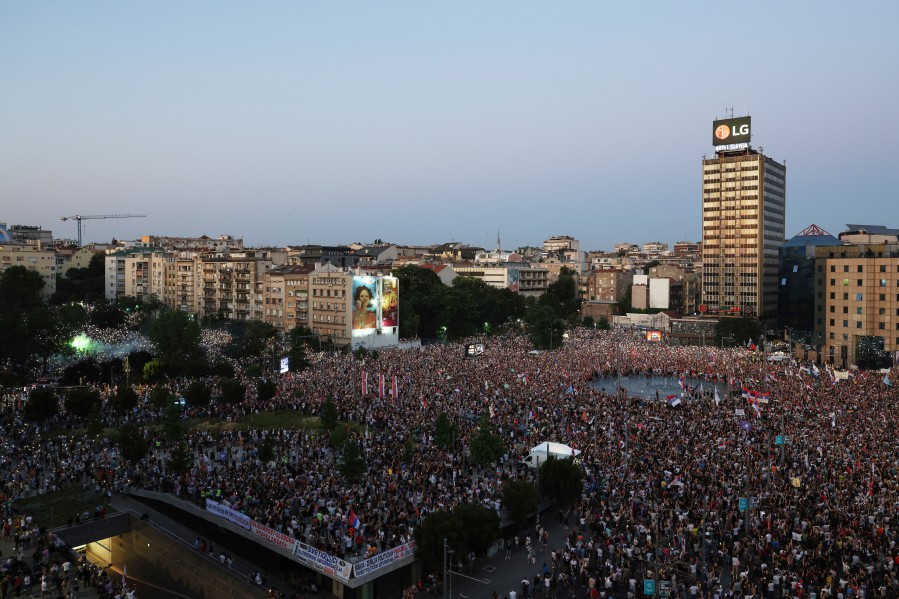 Duge kolone studenata i drugih građana, koje su se na više lokacija okupljala u Beogradu uoči protesta „Vidimo se na Vidovdan“, stigle su i gotovo u potpunosti ispunile kružni tok na centralnom beogradskom trgu Slavija, neposredno prije zvaničnog početka protesta u 18 časova.
