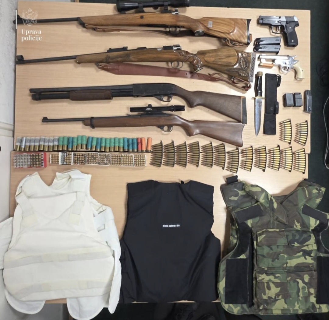 Iz Uprave policije preciziraju da su pronađeni lovački karabin marke „Mauser“ sa optičkim nišanom u ilegalnom posjedu, puška marke „Brno“ sa optičkim nišanom marke „Busnell“ u ilegalnom posjedu, puška sačmarica nepoznate marke u ilegalnom posjedu, pištolj nepoznate marke u ilegalnom posjedu, lovački karabin marke „M-48“ u ilegalnom posjedu, kao i pištolj marke „CZ 99 PARA“ sa okvirom u kojem se nalazilo pet komada municije i oružnim listom na ime pokojnog člana porodice.