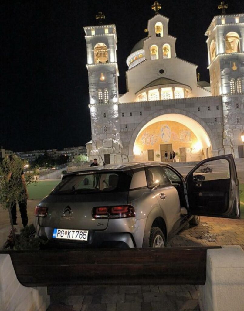 „Oko 21.30 časova policiji je prijavljeno da je jedna osoba vozilom polomila ulaznu rampu parkinga kod hrama u Podgorici.